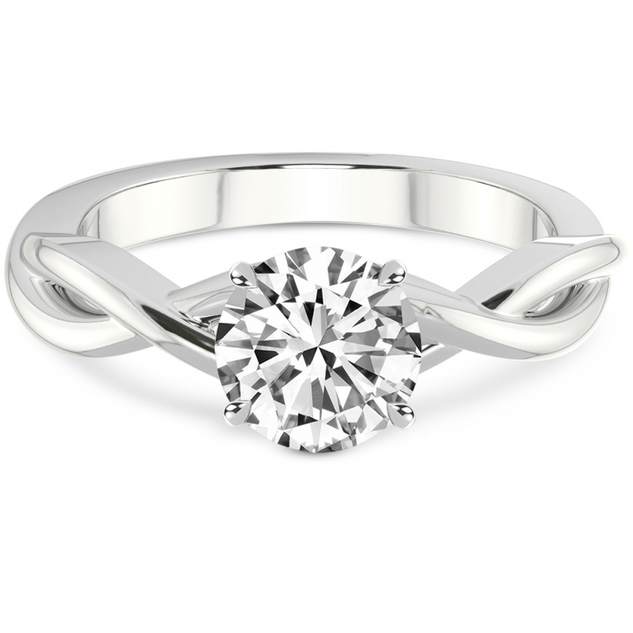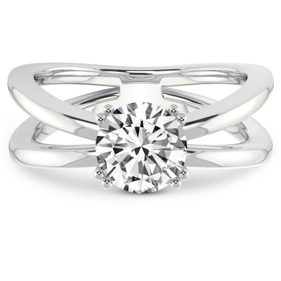 This Mélanie Criss Cross Solitaire Ring is a Round shape ring Engagement type 18k White Gold