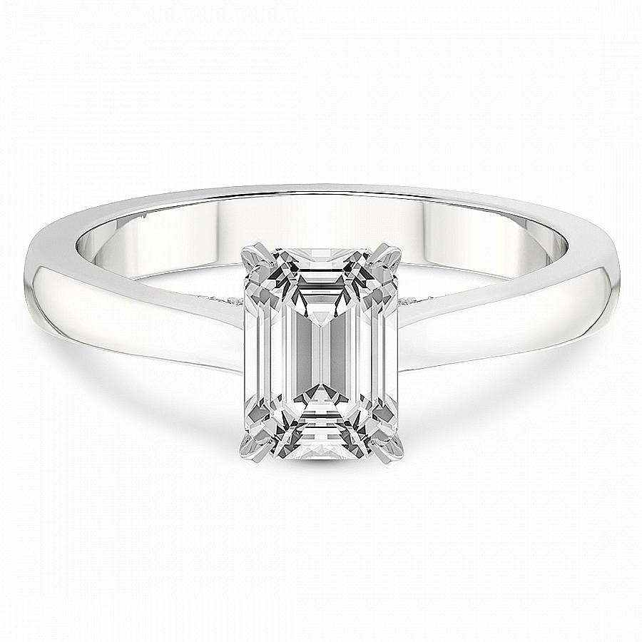 This Denise Hidden Accents Solitaire Ring is a Emerald shape ring Engagement type 18k White Gold