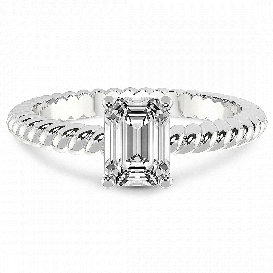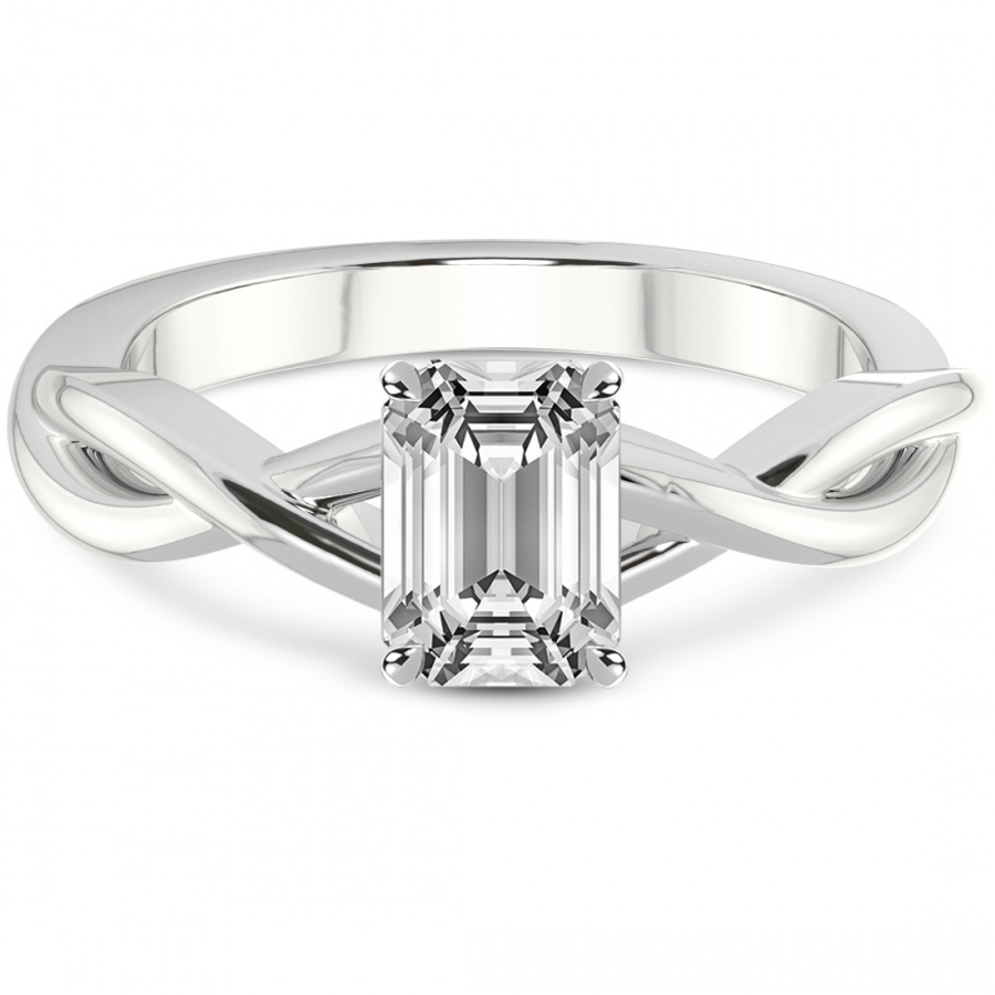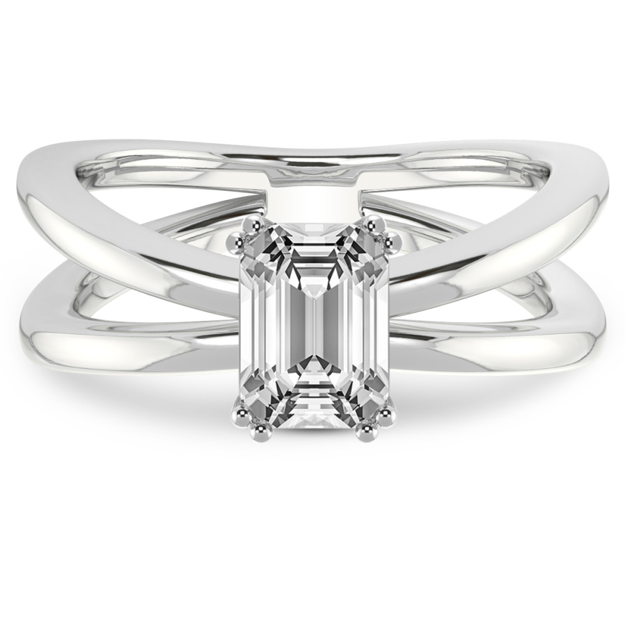 This Mélanie Criss Cross Solitaire Ring is a Emerald shape ring Engagement type 18k White Gold