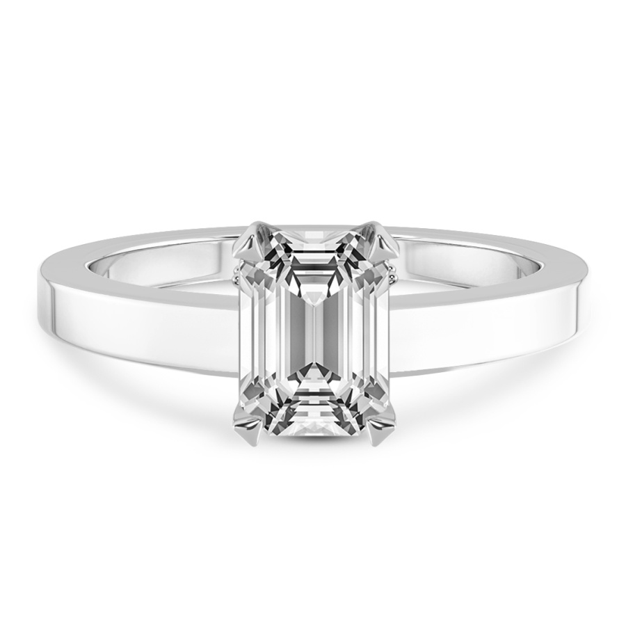 This Dahlia Solitaire Diamond Ring is a Emerald shape ring Engagement type 18k White Gold