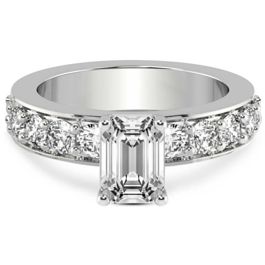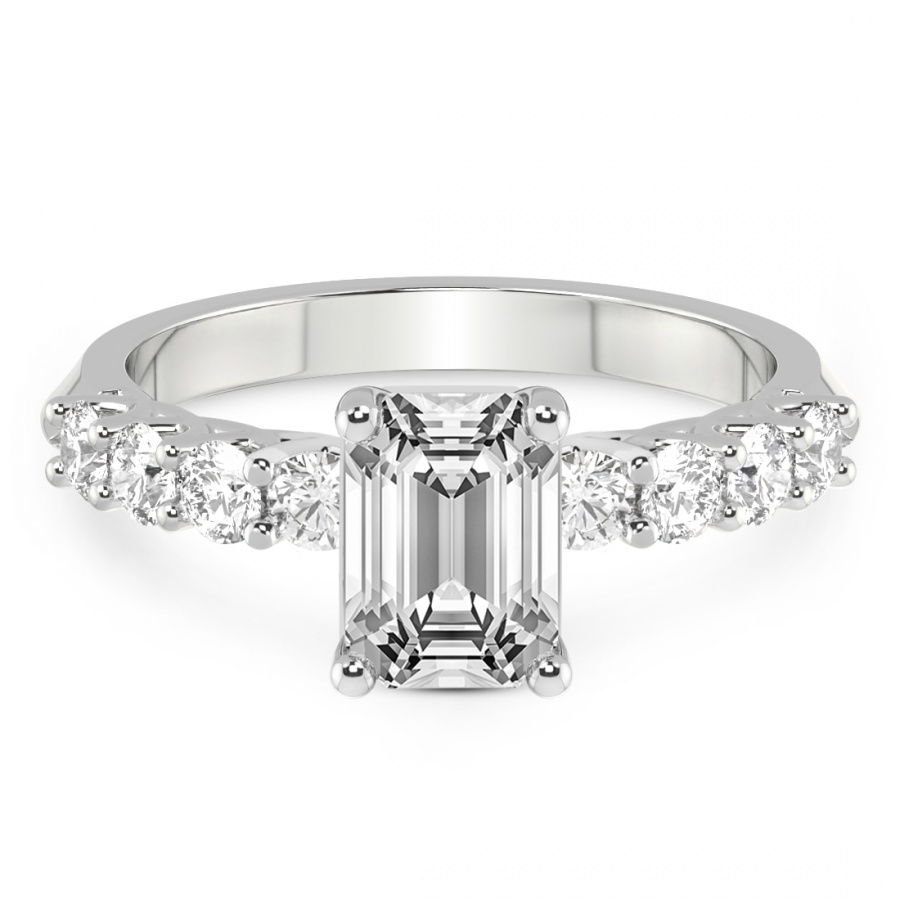 This Florence Side Stone Diamond Ring is a Emerald shape ring Engagement type 18k White Gold
