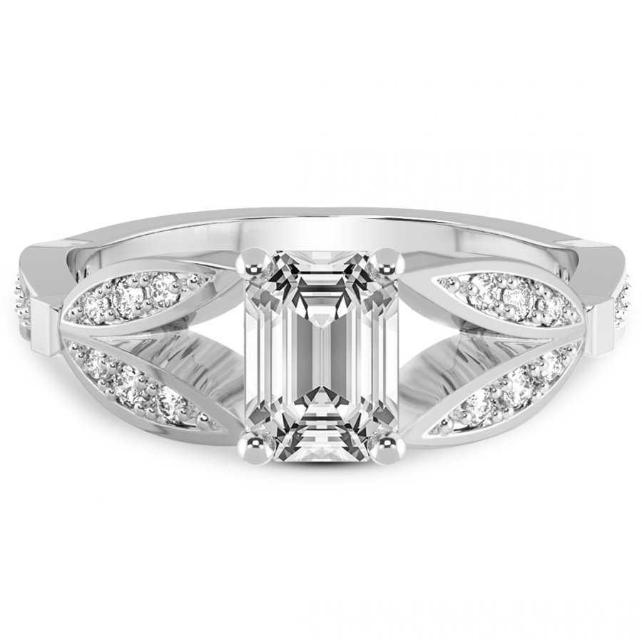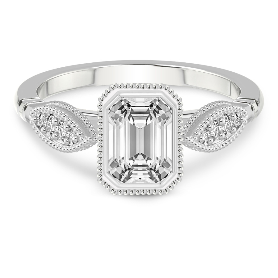 This Eleanor Milgrain Lab Diamond Ring is a Emerald shape ring Engagement type pt White Gold