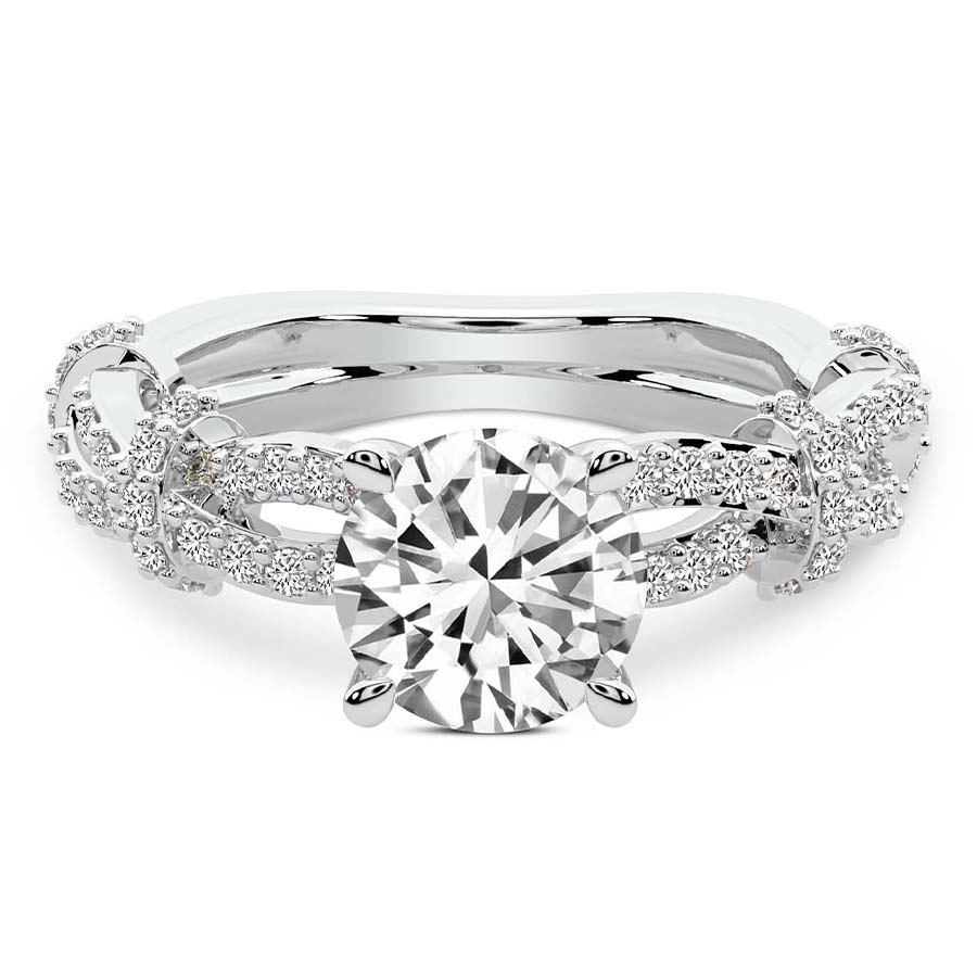 This Pauline Double Twist Side Stone Ring is a Round shape ring Engagement type 18k White Gold