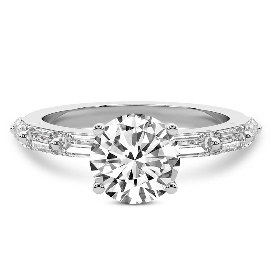 This Bella Baguette Side Stone Ring is a Round shape ring Engagement type 18k White Gold