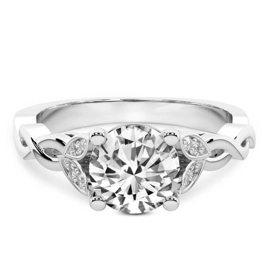 This Amélie Twisted Shank Diamond Ring is a Round shape ring Engagement type 18k White Gold