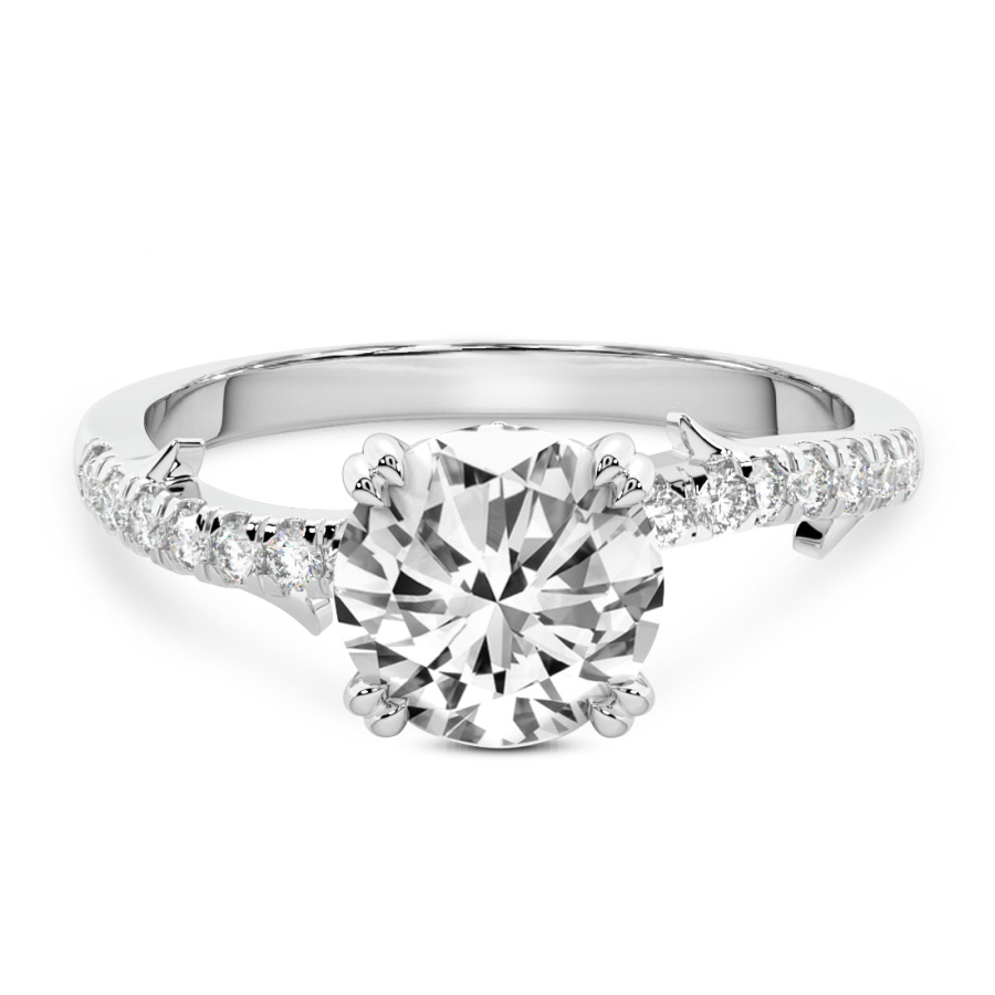 This Melanie Side Stone Diamond Ring is a Round shape ring Engagement type 18k White Gold