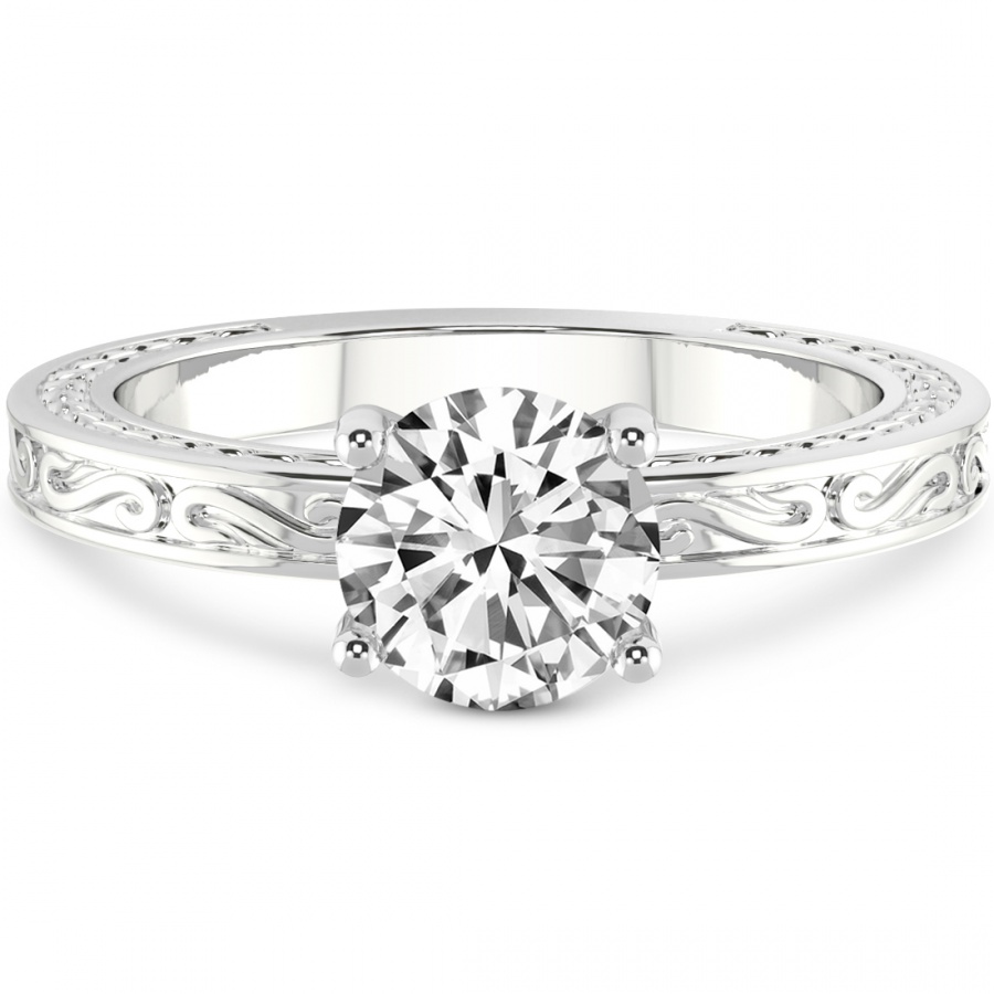 This Brielle Fern Solitaire Ring is a Round shape ring Engagement type 18k White Gold