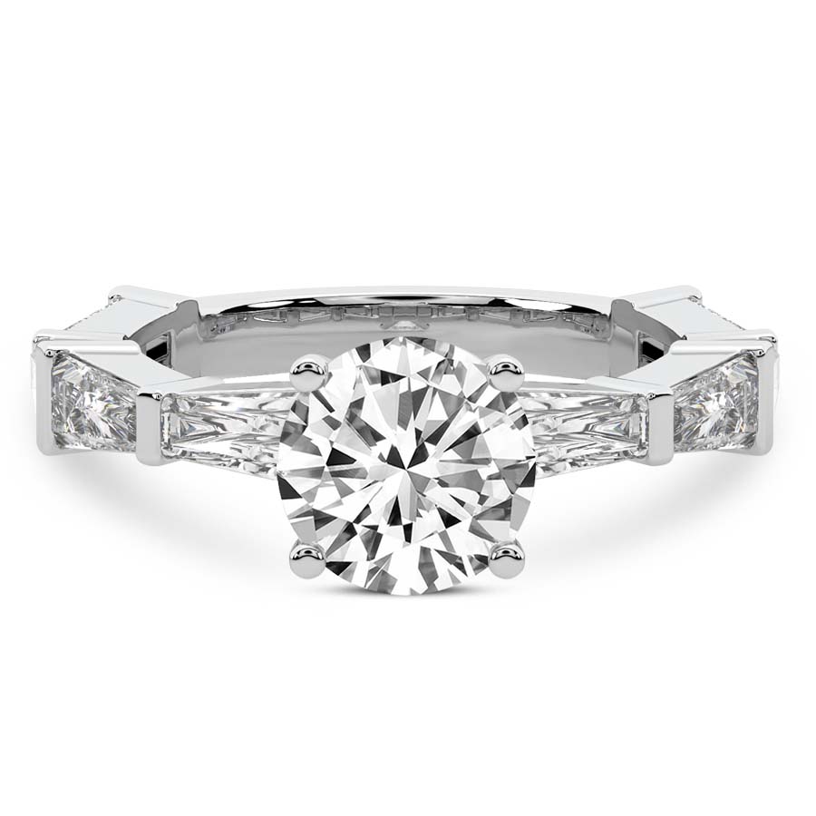 This Esmé Tapered Side Stone Ring is a Round shape ring Engagement type 18k White Gold