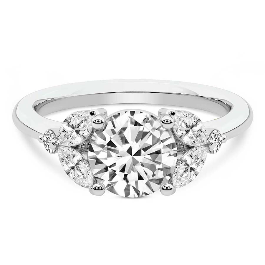 This Anaïs Marquise Side Stone Ring is a Round shape ring Engagement type 18k White Gold
