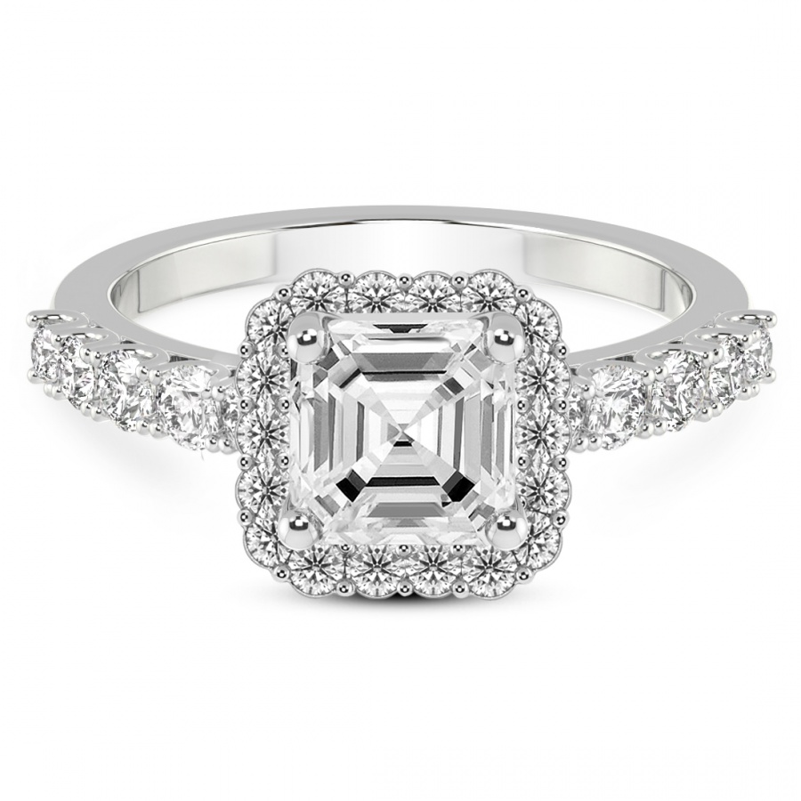 This Ottilie Split Shank Halo Lab Diamond Ring is a Asscher shape ring Engagement type 18k White Gold
