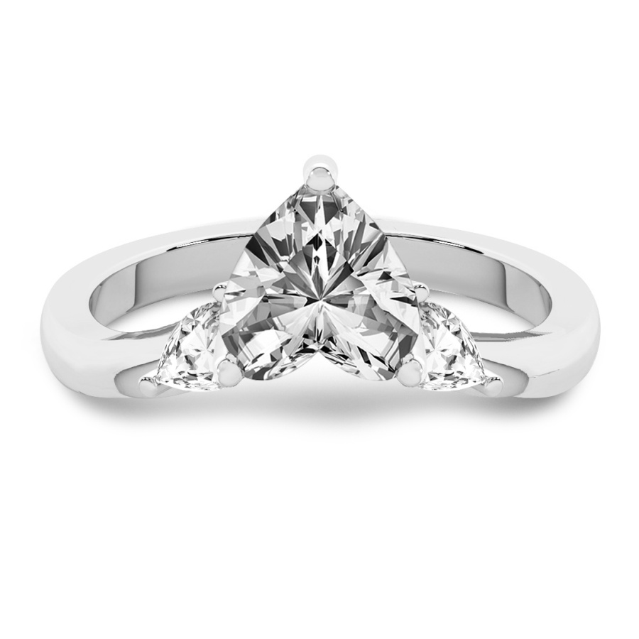 This Jazmine Three Stone Chevron Diamond Ring is a Heart shape ring Engagement type 18k White Gold