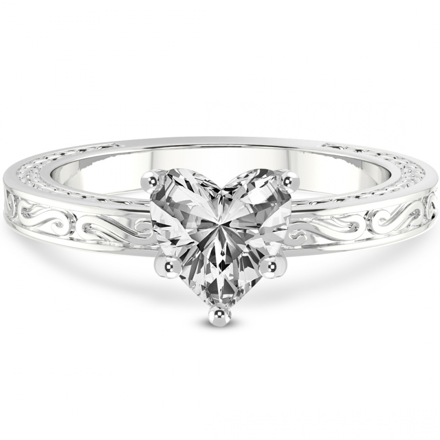 This Roxane Solitaire Diamond Ring is a Heart shape ring Engagement type 18k White Gold