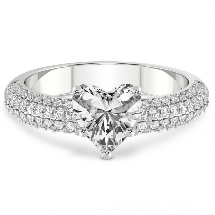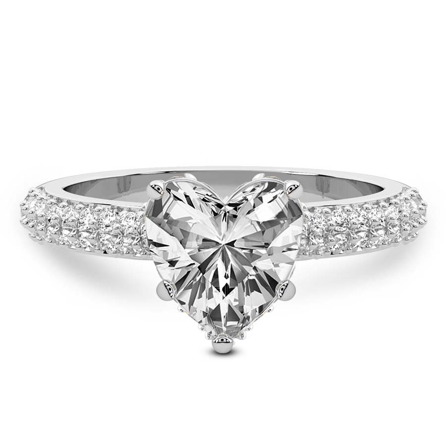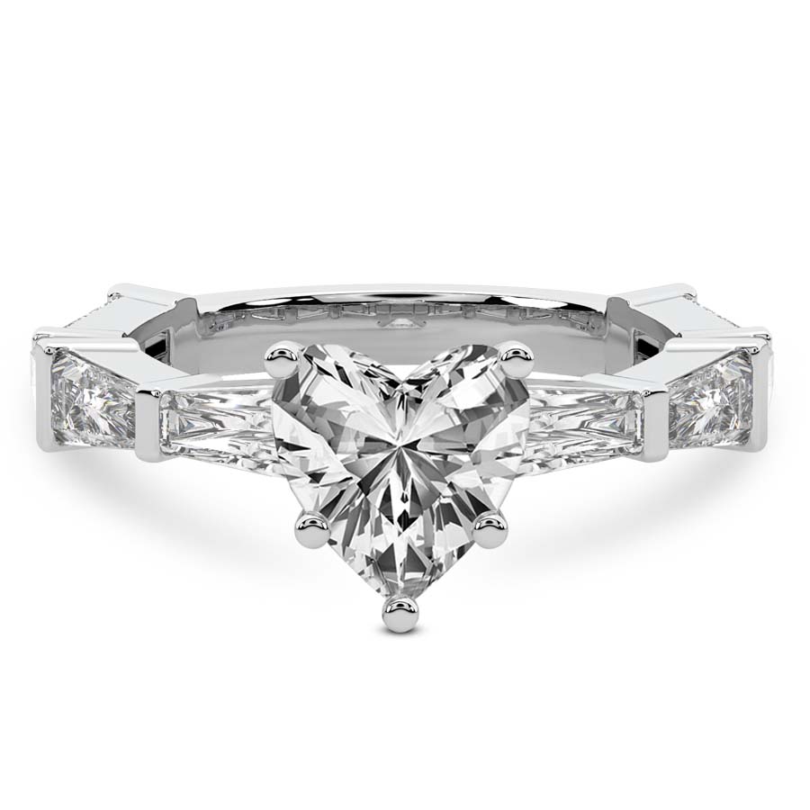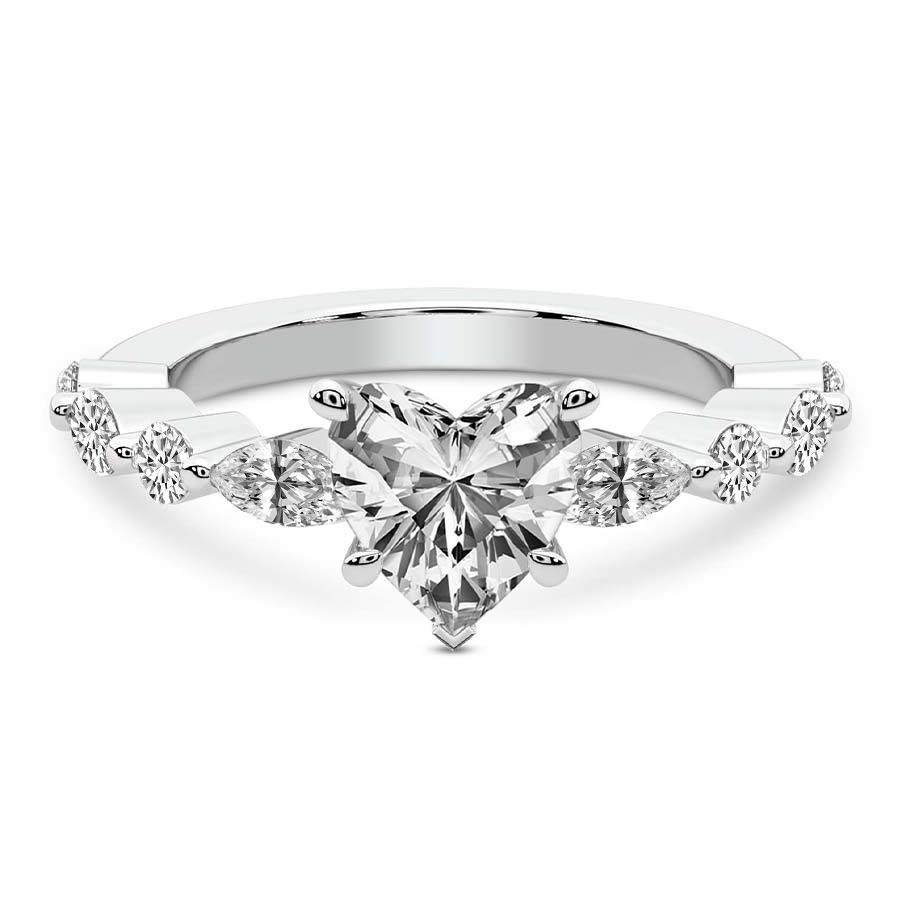 This Margaret Side Stone Knife Edge Diamond Ring is a Heart shape ring Engagement type 18k White Gold