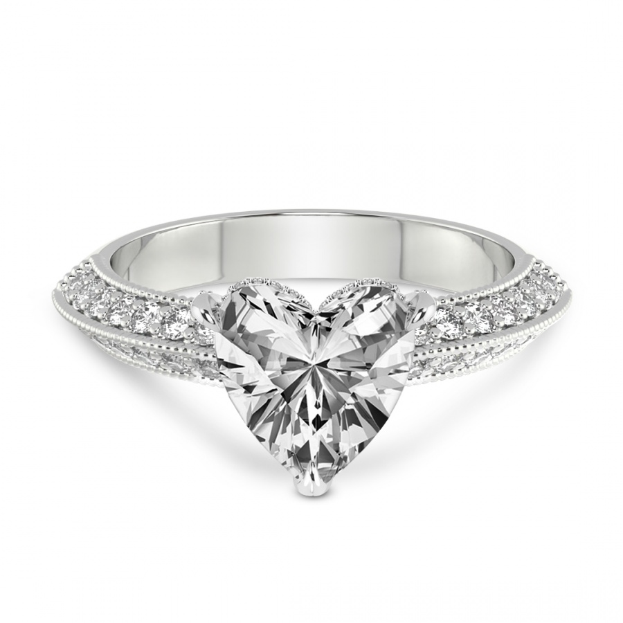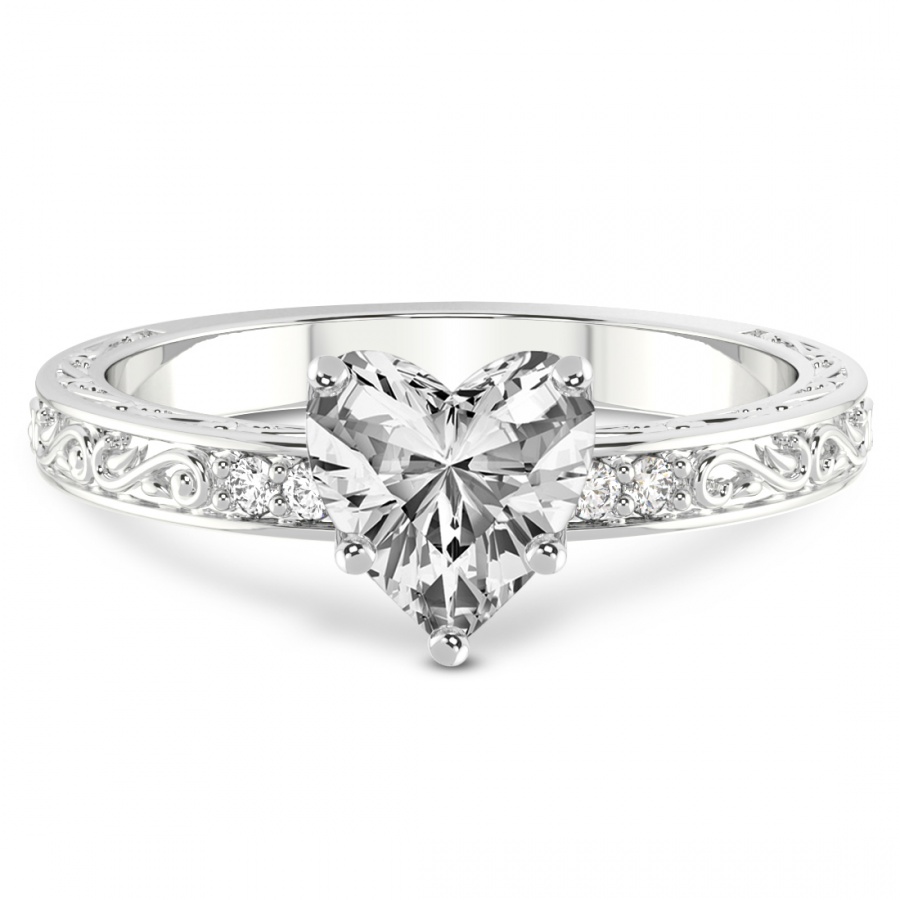 This Piper Hidden Accents Solitaire Ring is a Heart shape ring Engagement type 18k White Gold
