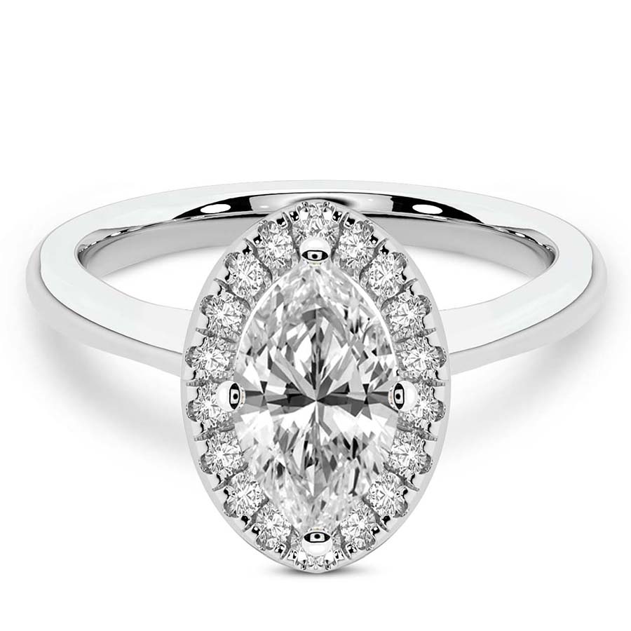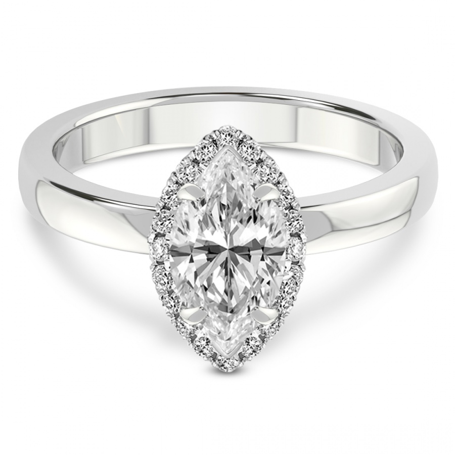 This Abigail Halo Ring is a Marquise shape ring Engagement type 18k White Gold