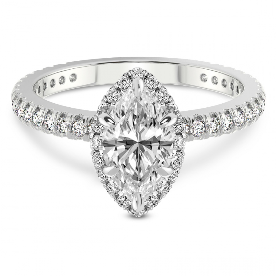 This Evelyn Halo Diamond Eternity Ring is a Marquise shape ring Engagement type 18k White Gold