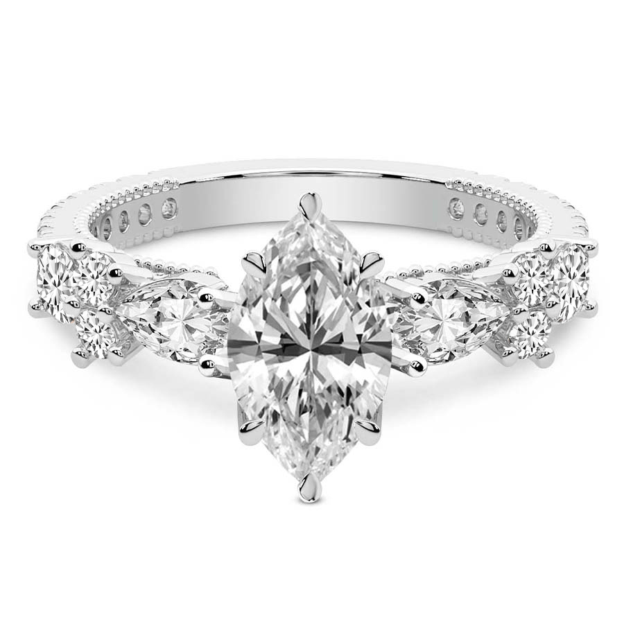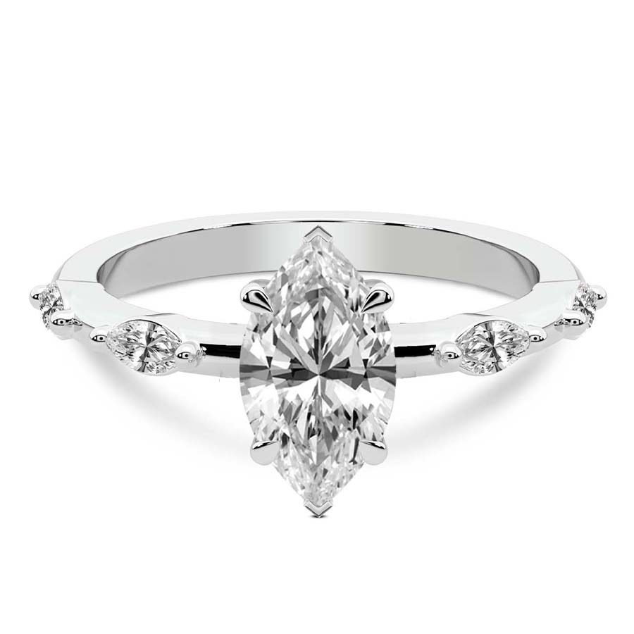 This Nerissa Marquise Side Stone Ring is a Marquise shape ring Engagement type 18k White Gold