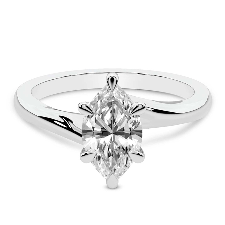 This Aria Twist Prongs Solitaire Diamond Ring is a Marquise shape ring Engagement type 18k White Gold