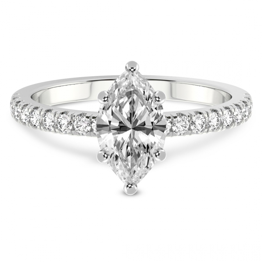 This Amelia Side Stone Ring is a Marquise shape ring Engagement type 18k White Gold
