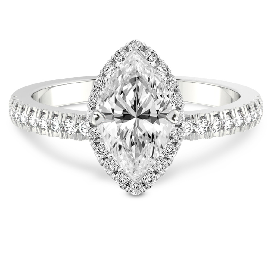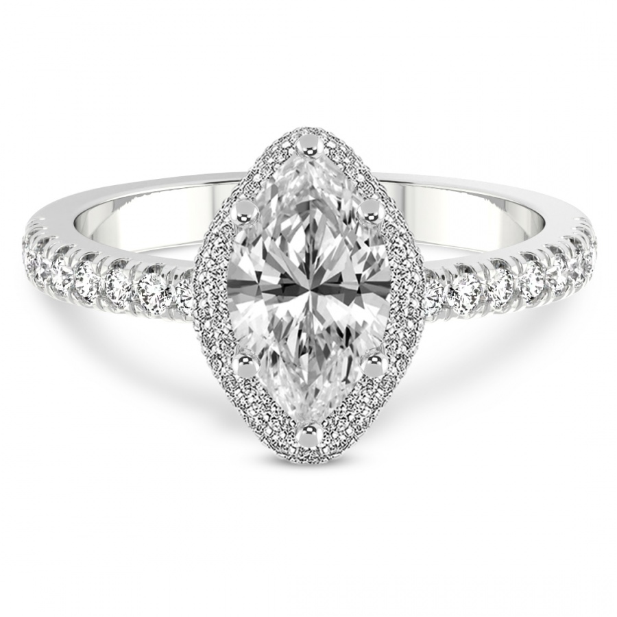 This Alice Classic Halo Diamond Ring is a Marquise shape ring Engagement type 18k White Gold