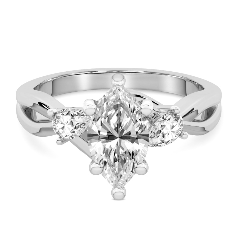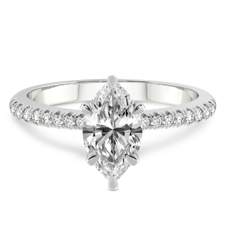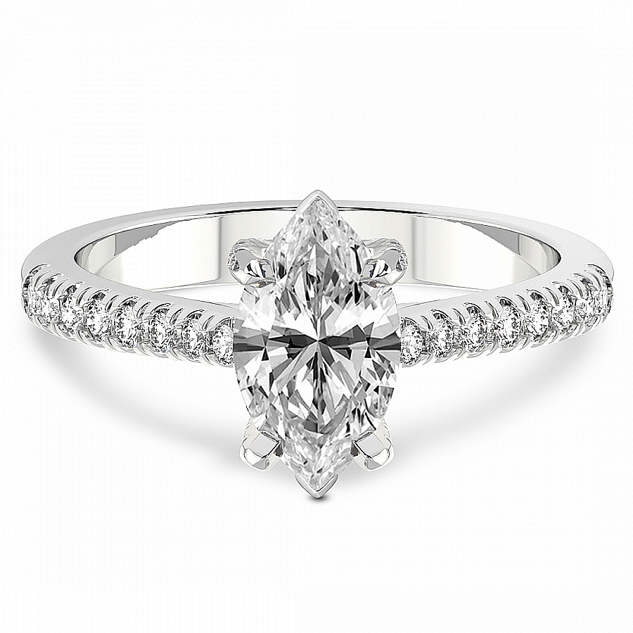 This Melanie Side Stone Diamond Ring is a Marquise shape ring Engagement type 18k White Gold