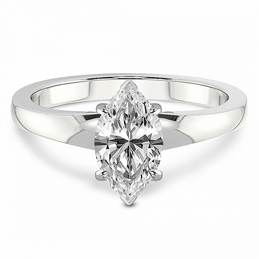 This MADEILA Flat Band Solitaire Ring is a Marquise shape ring Engagement type 18k White Gold
