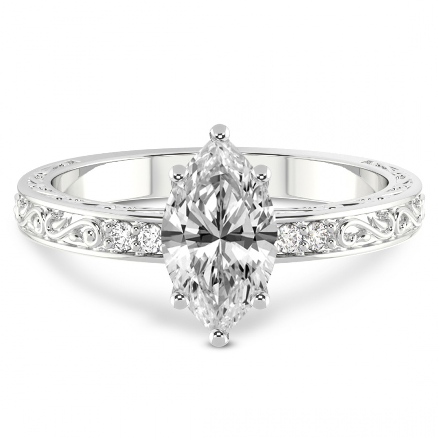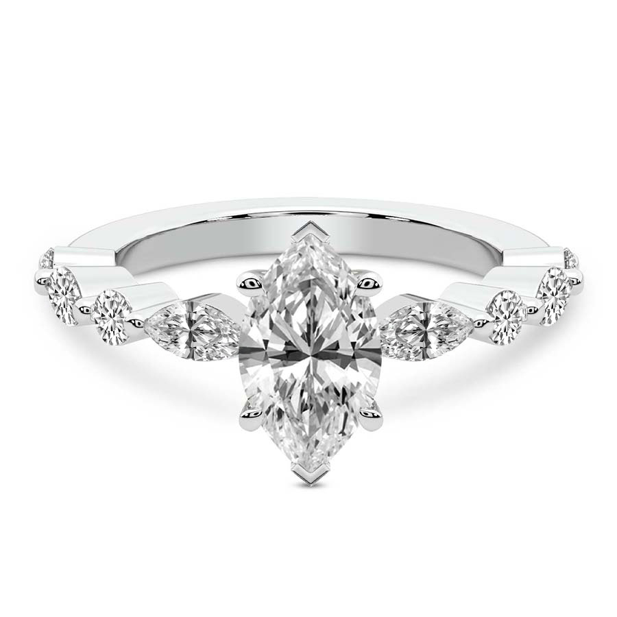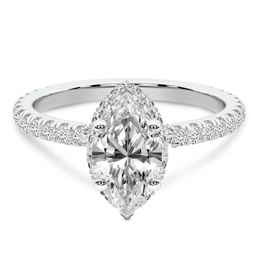 This Denise Hidden Accents Solitaire Ring is a Marquise shape ring Engagement type 18k White Gold