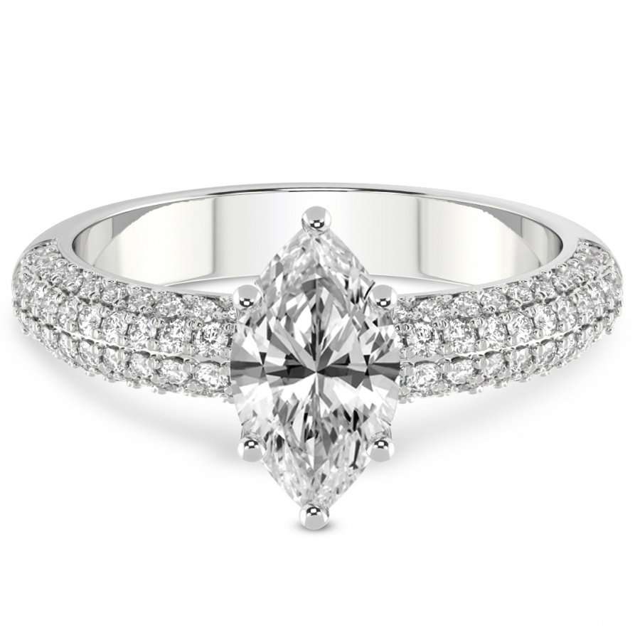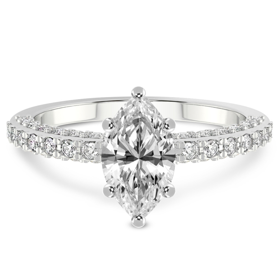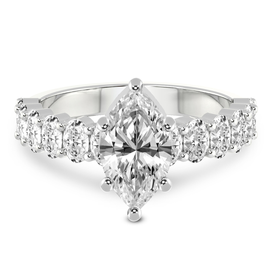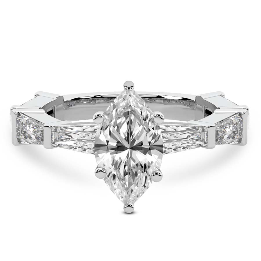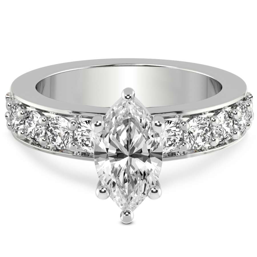 This Margaret Side Stone Knife Edge Diamond Ring is a Marquise shape ring Engagement type 18k White Gold