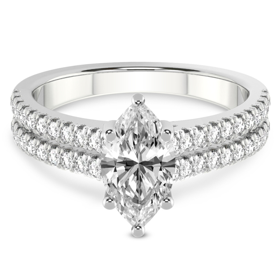 This Thalia Split Shank Felicity Ring is a Marquise shape ring Engagement type 18k White Gold