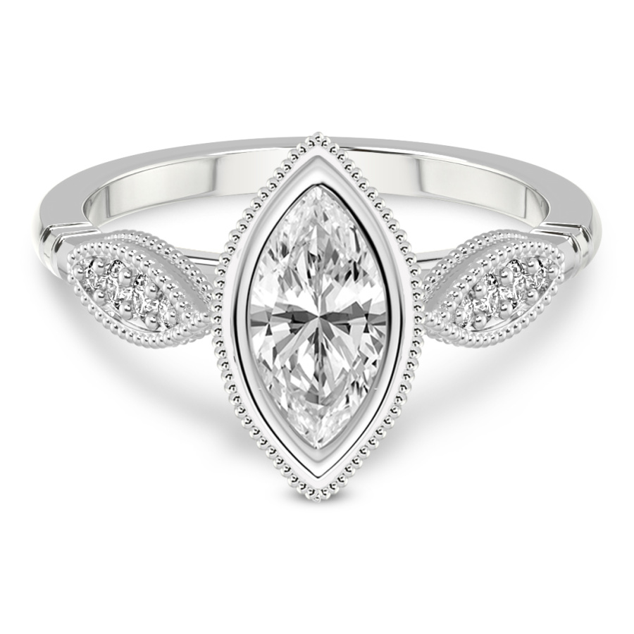 This Tabitha Felicity Bezel Diamond Ring is a Marquise shape ring Engagement type 18k White Gold