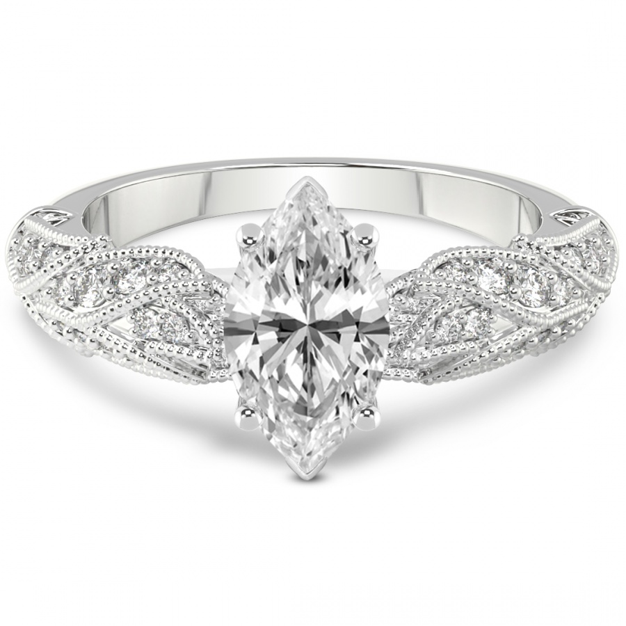 This Eden Twisted Shank Diamond Ring is a Marquise shape ring Engagement type 18k White Gold