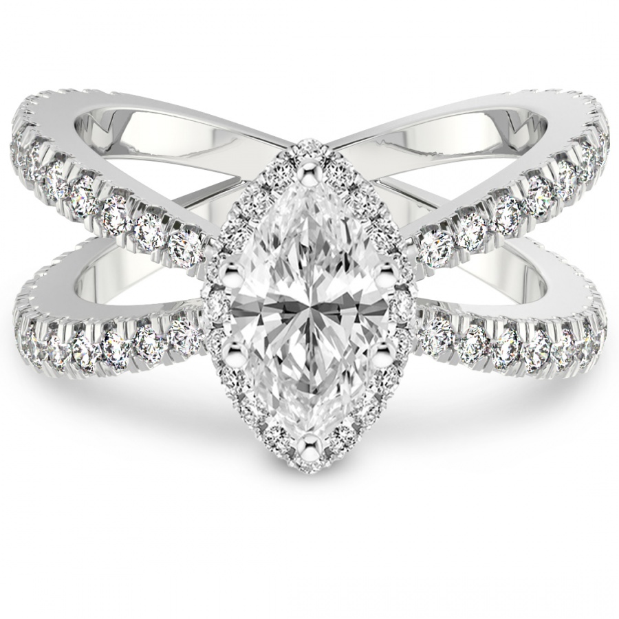 This Blythe Criss Cross Halo Ring is a Marquise shape ring Engagement type 18k White Gold