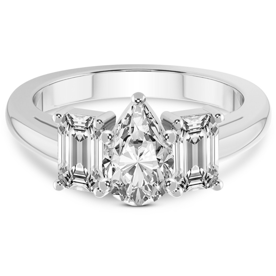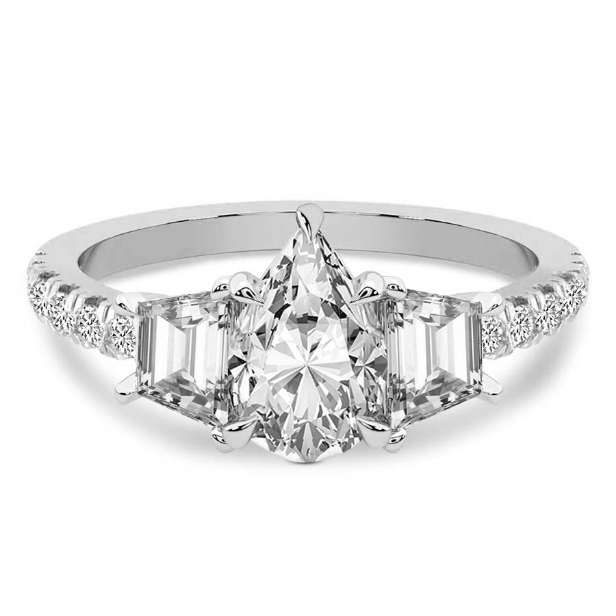 This Katrina Three Stone Trapezoid Ring is a Pear shape ring Engagement type 18k White Gold