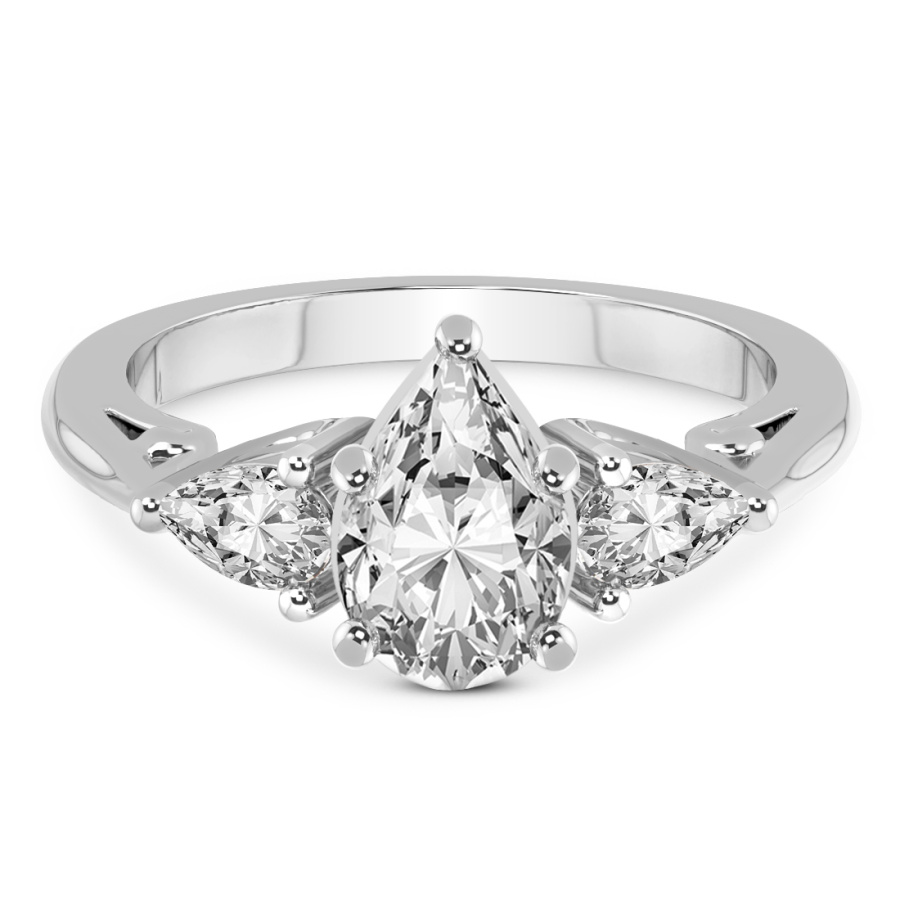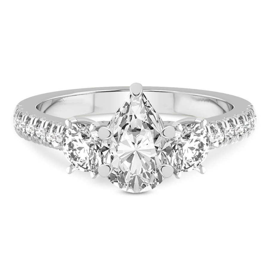 This Hannah Three Stone Diamond Ring is a Pear shape ring Engagement type 18k White Gold