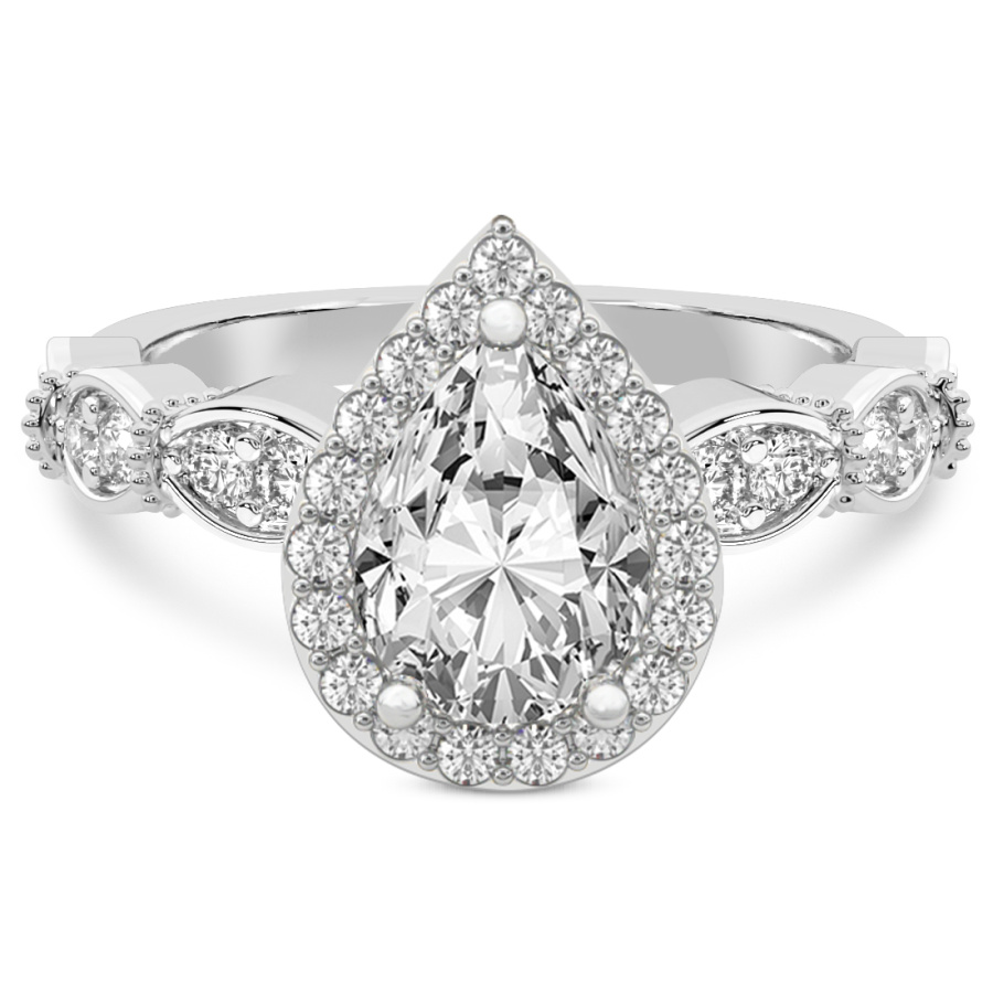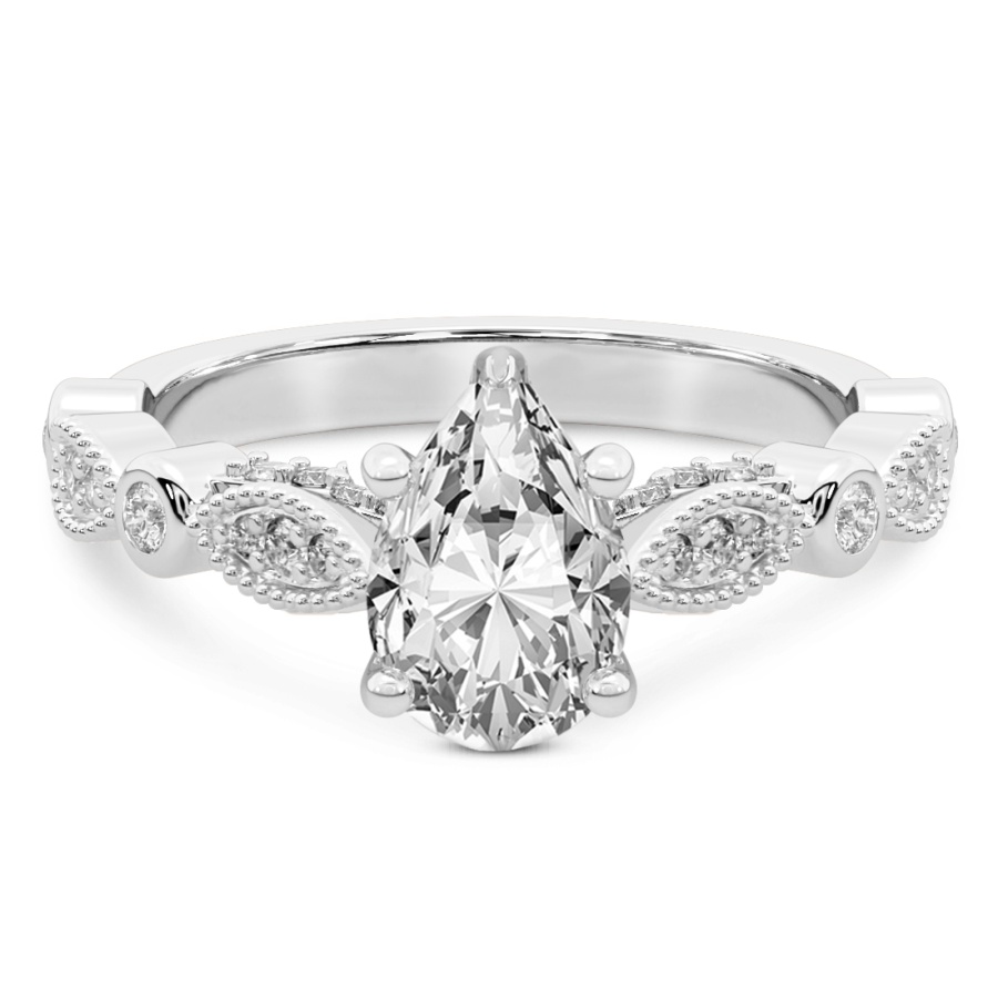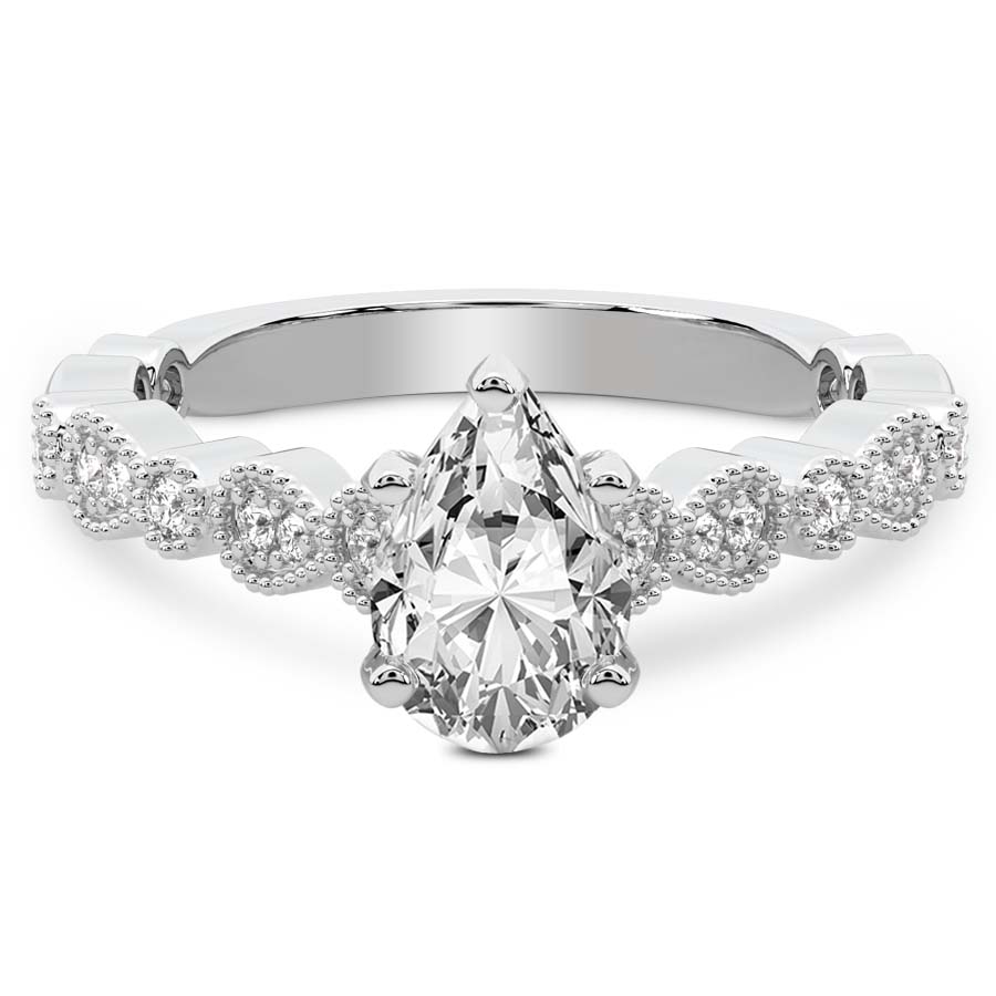 This Molly Elite Milgrain Diamond Ring is a Pear shape ring Engagement type 18k White Gold