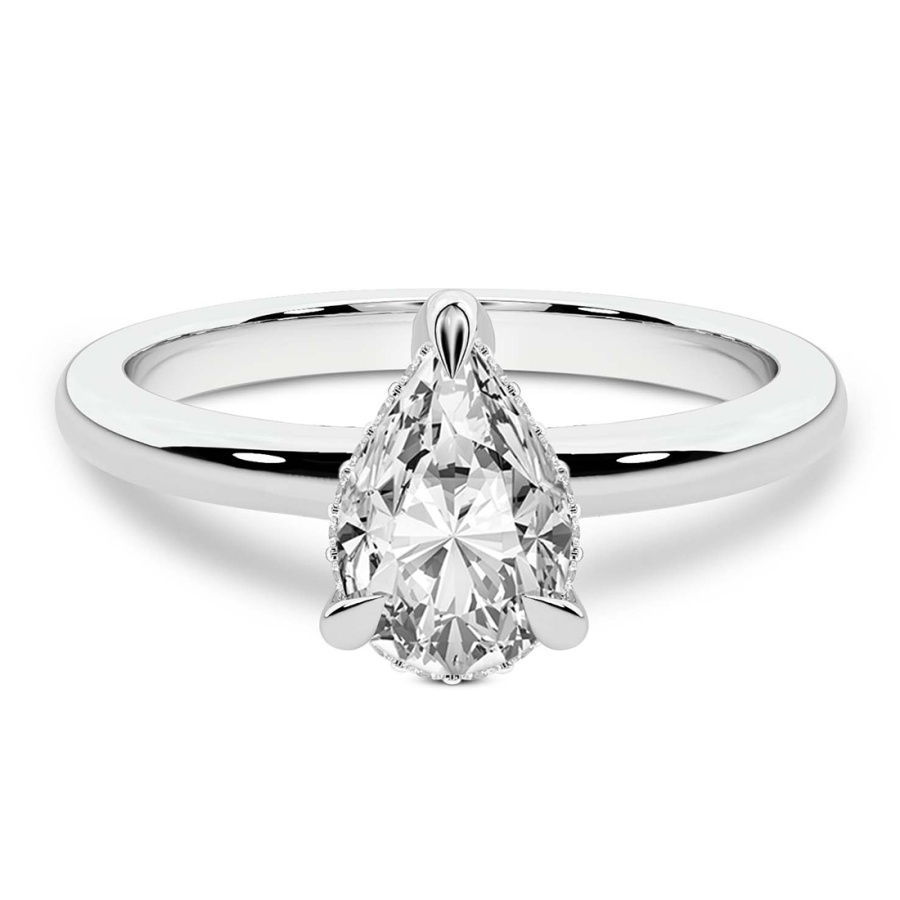 This Anna Hidden Halo Solitaire Diamond Ring is a Pear shape ring Engagement type 18k White Gold