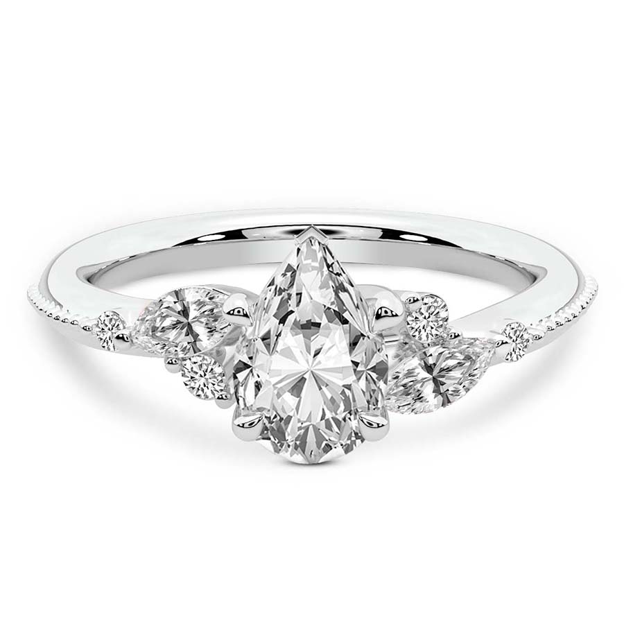 This Elena Side Stone Diamond Ring is a Pear shape ring Engagement type 18k White Gold
