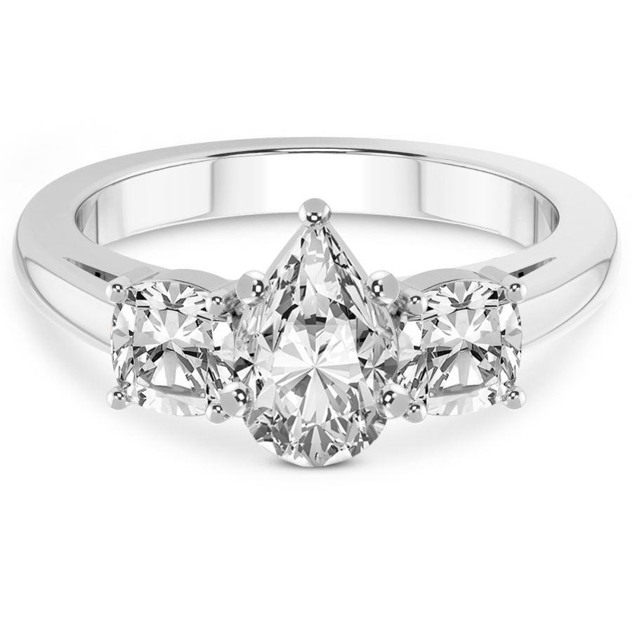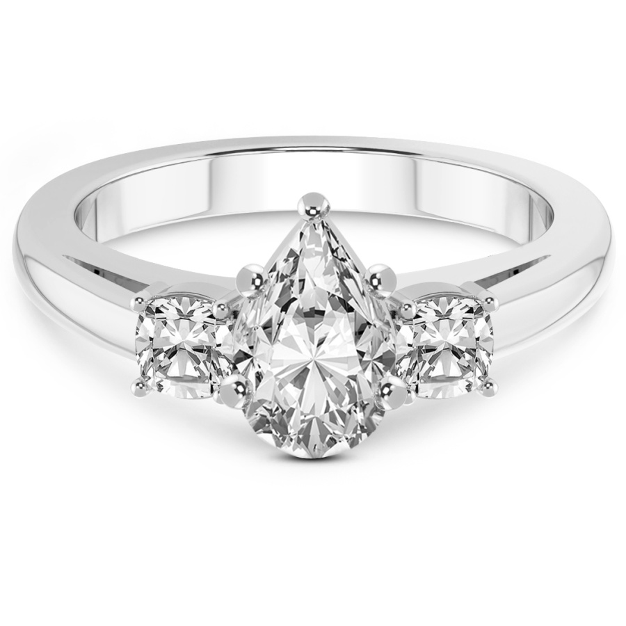 This Alice Three Stone Side Cushion Diamond Ring is a Pear shape ring Engagement type 18k White Gold