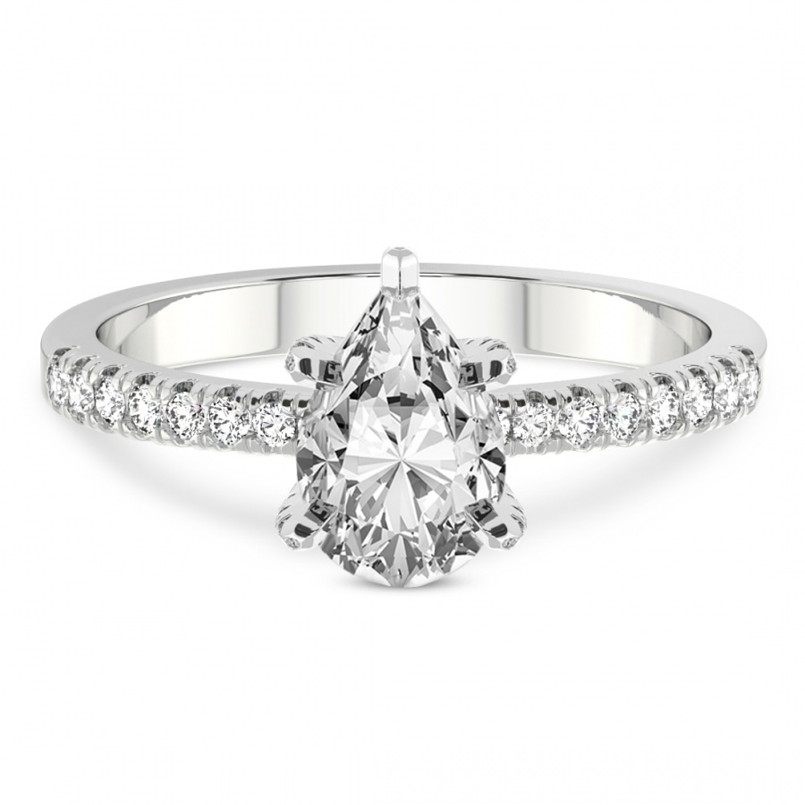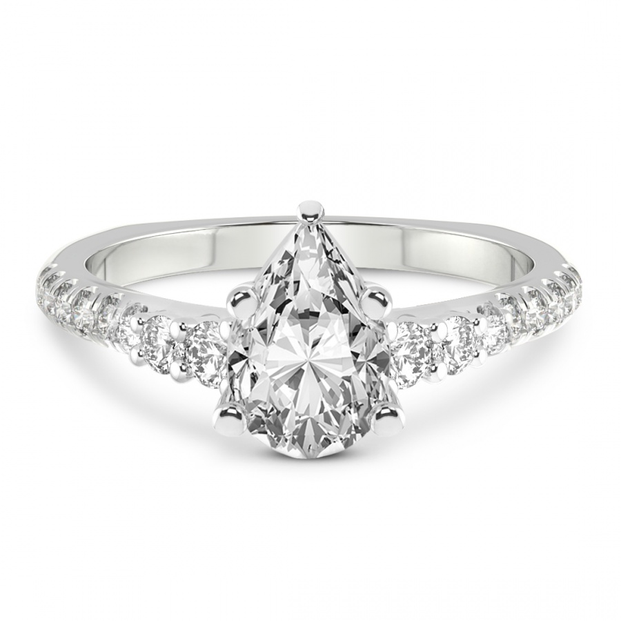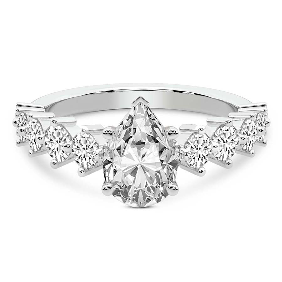 This Madelyn Four Claw Side Stone Ring is a Pear shape ring Engagement type 18k White Gold