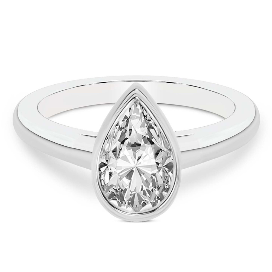 This Ava Classic Bezel Solitaire Diamond Ring is a Pear shape ring Engagement type 18k White Gold