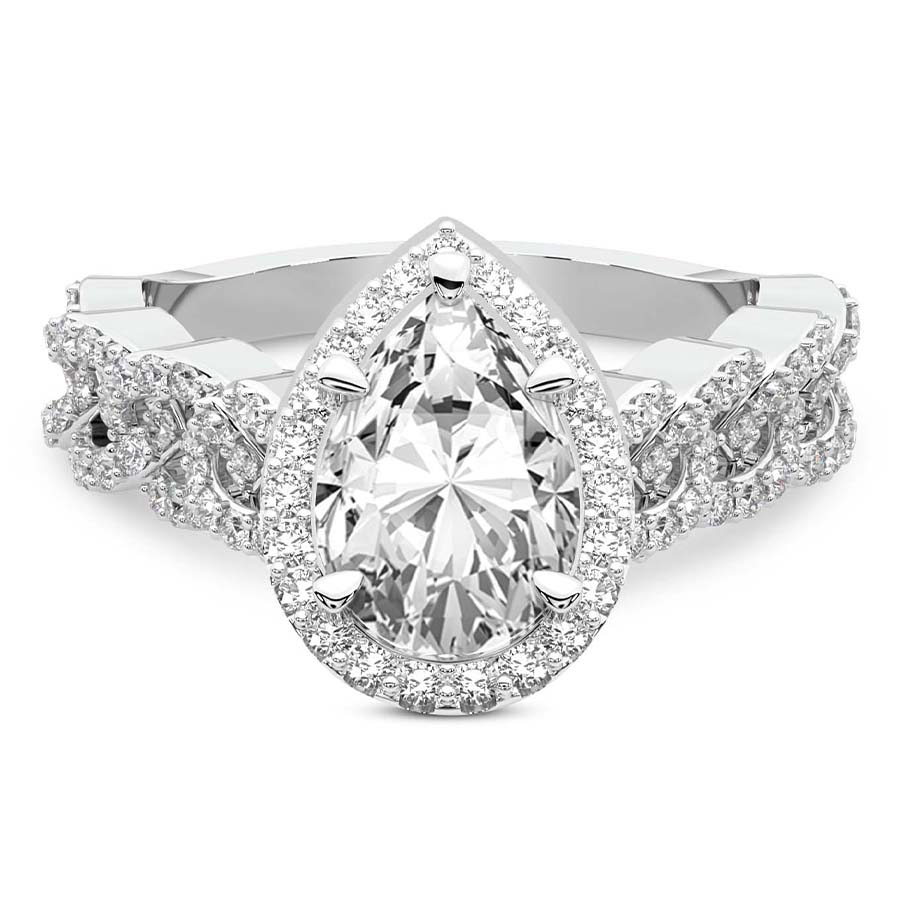 This Serenity Halo Celtic Knot Diamond Ring is a Pear shape ring Engagement type 18k White Gold