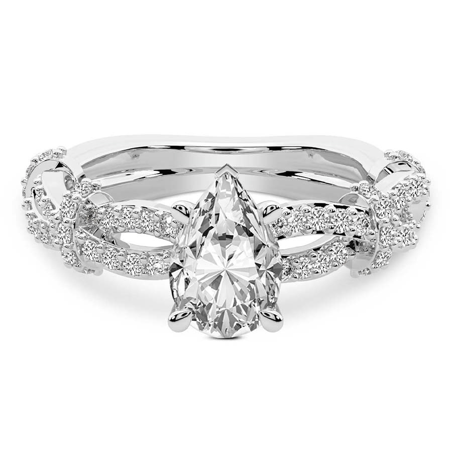 This Pauline Double Twist Side Stone Ring is a Pear shape ring Engagement type 18k White Gold