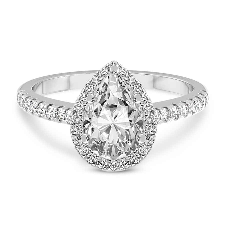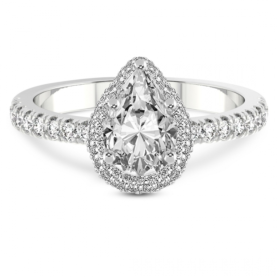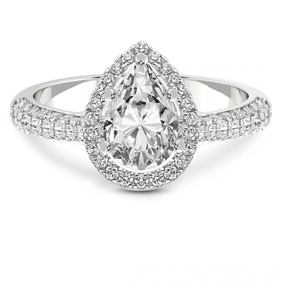 This Jasmine Halo Diamond Ring is a Pear shape ring Engagement type 18k White Gold