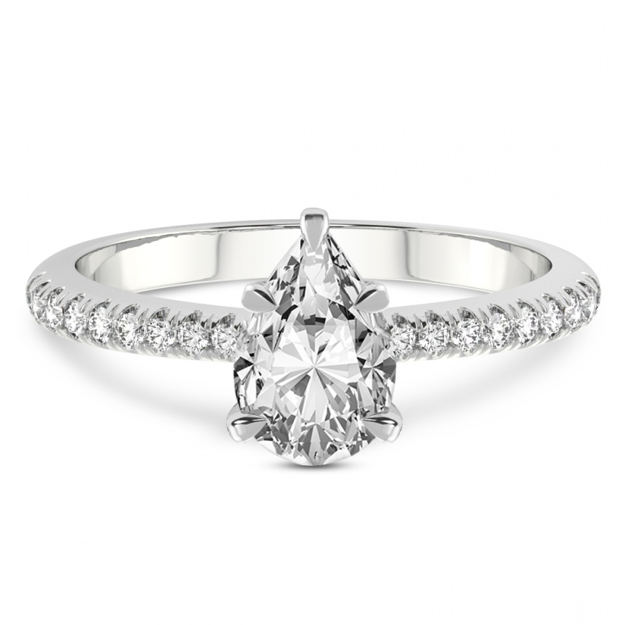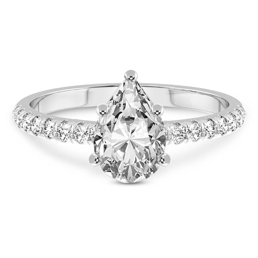 This Zoé Side Stone Encrusted Ring is a Pear shape ring Engagement type 18k White Gold