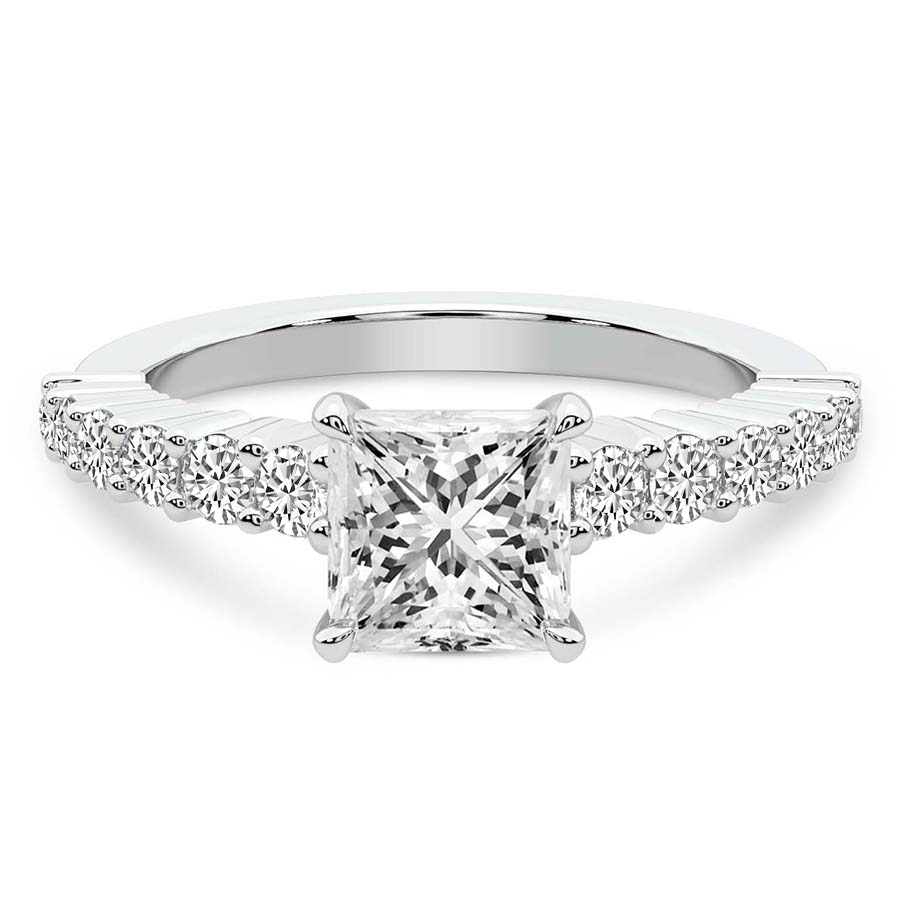 This Elena Side Stone Diamond Ring is a Princess shape ring Engagement type 18k White Gold