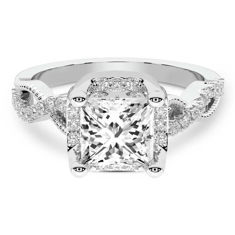 This Serenity Halo Celtic Knot Diamond Ring is a Princess shape ring Engagement type 18k White Gold