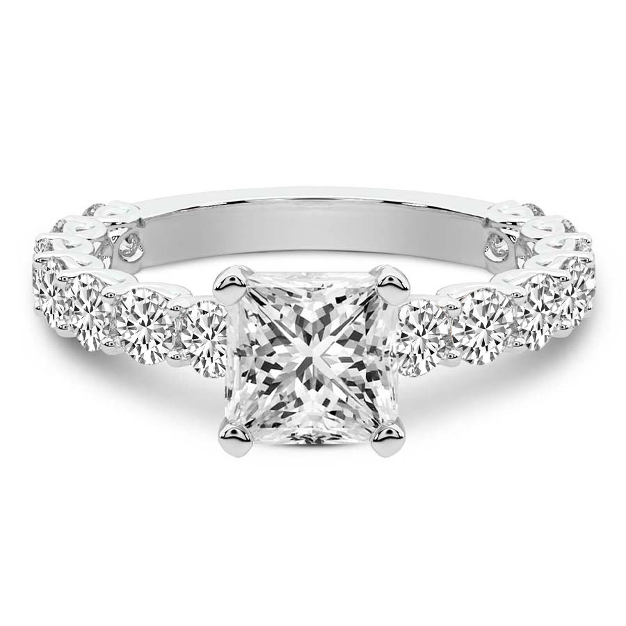 This Madelyn Four Claw Side Stone Ring is a Princess shape ring Engagement type 18k White Gold