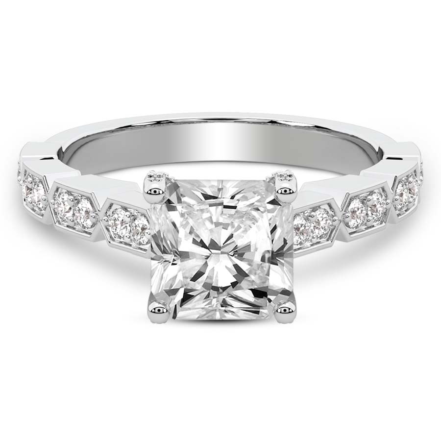 This Bridget Love Diamond Accent Ring is a Radiant shape ring Engagement type 18k White Gold