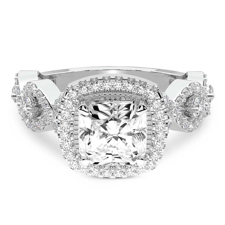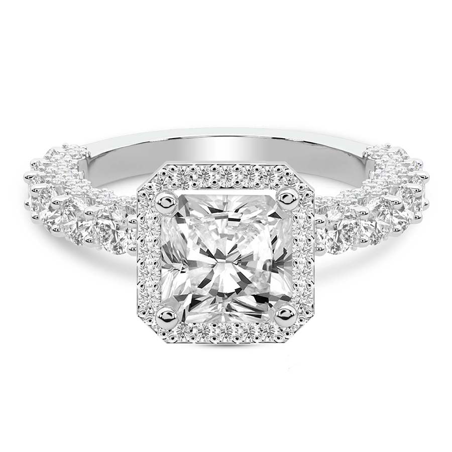 This Savannah Halo Diamond Ring is a Radiant shape ring Engagement type 18k White Gold