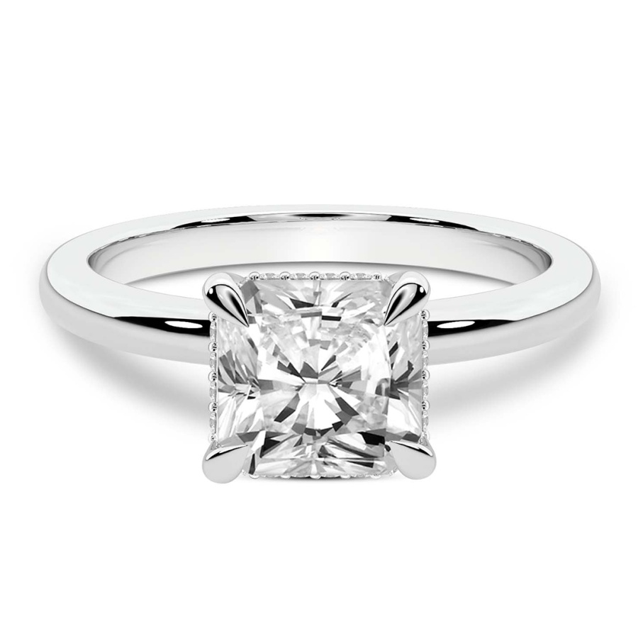 This Anna Hidden Halo Solitaire Diamond Ring is a Radiant shape ring Engagement type 18k White Gold